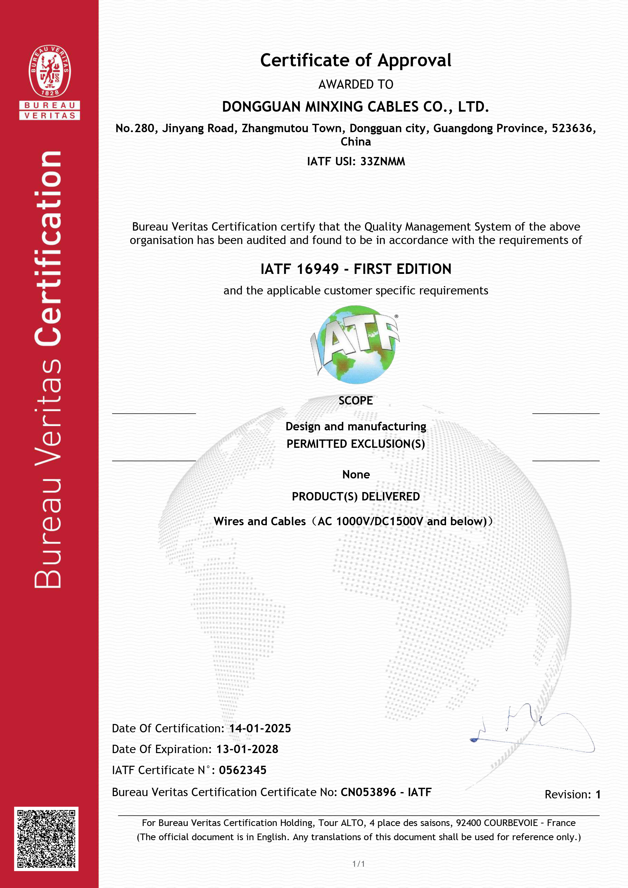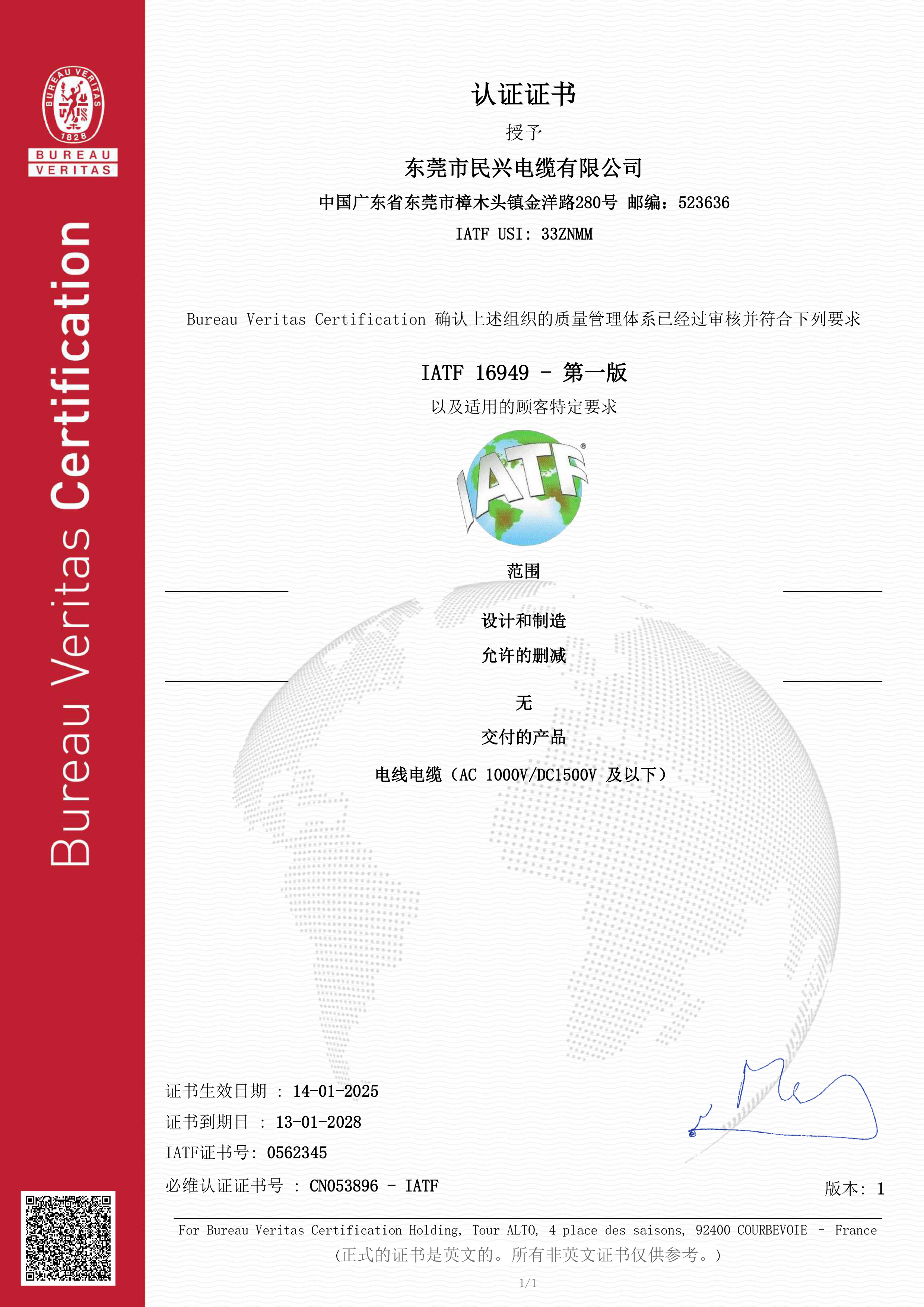 重磅!民兴电缆通过IATF 16949汽车行业质量管理体系认证